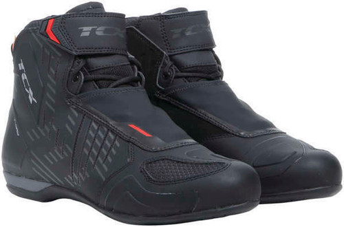 TCX R04D WP are waterproof motorcycle shoes that guarantee certified protection, versatility and comfort suited to prolonged use. The T-DRY waterproof membrane ensures perfect protection against water and atmospheric agents, for perfectly comfortable feet in all conditions. The microfiber upper guarantees great sensitivity for riding and a precise fit. R04D WP is laced, with gaiter and Velcro for adjusting the collar area and, for maximum safety, the Bycast leather lever guard and the reflective element on the back. Protection is ensured by the D3O® inserts on the ankle and reinforcements on the toe, heel and gear area. TCX RO4D WP shoes incorporate the OrthoLite® insole for long-lasting cushioning and high breathability, the Groundtrax® sole made of wear-resistant rubber, ensuring maximum grip, sensitivity and comfort suited to a motorcycle shoe to be worn all day, while the upper is made of mesh fabric with hot melt coating.