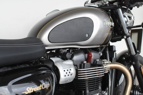 This Snake Skin Grip Kit is a stylish addition to your bike that works just as hard as any tool to improve your riding experience. The 0.125-inch thick snake skin gives this kit an outstanding grip, while the diamond pattern is low-profile for a subtle style enhancement. The kit's spectacular grip eliminates sliding and increases your control over your body's position to decrease the fatigue and shred corners. Plus, promoting proper weight adjustment makes for a more enjoyable ride overall, thanks to the lessened pressure on your wrists, elbows, and shoulders. And with its meticulous design and low-profile diamond pattern, this grip kit will provide ample support without damaging your leathers. Each kit comes pre-cut with a reusable adhesive, so all you have to do is stick them on and head out!