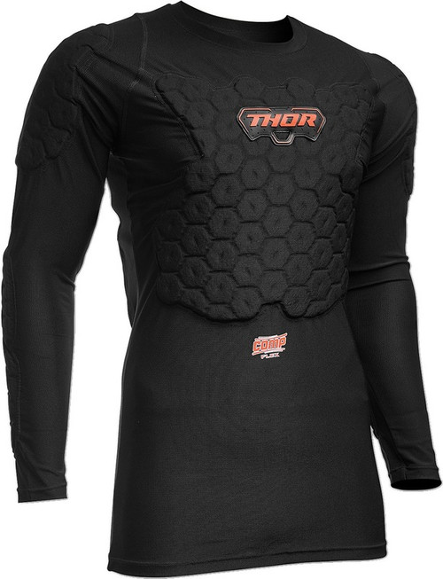 Compression fit base layer Flat-stitched seams minimize irritation Mesh construction for ventilation Lightly padded and articulated chest panel to protect against lofted dirt and light debris