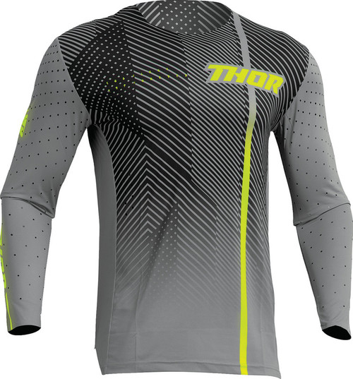 Hybrid fit with set-in style tailored sleeves Polyester/spandex sleeves feature 4-way stretch and laser perforation enhanced airflow Taped collar and cuffs Laser cut holes for ventilation Minimal seams for maximum comfort Moisture wicking material keeps you dry Tail silicone print helps keep jersey tucked in Flat-stitched seams minimize irritation