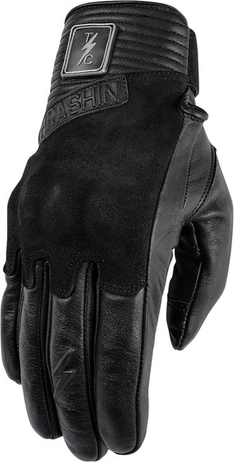Genuine cowhide leather Internal molded flexible PVC knuckle protection Suede on impact areas for extra durability Light padding on top of hand TPR logo, embossed Thrashin logo and bolt on middle finger Touch screen compatible (may not work with screen protector)