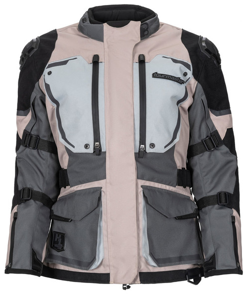 Abrasion-resistant 600D polyester shell with DWR coating. 1000D Honeycomb nylon ripstop reinforced shoulders, elbows, and forearms. Ergonomically shaped external TPU shoulder armor. Aqua-Barrier Under-the-Helmet hidden hood Lightweight Reissa breathable, waterproof zip-out liner, plus full sleeve zip-out thermal liner. 4-Way stretch shoulders and accordion elbows stretch panels. 2 large hi-flow zippered mesh chest panels offer multiple configuration options. Additional vents include forearm, upper bicep, underarm, and oversized rear exhaust panel. Removable EVA foam back pad Sliding arm take-up straps for infinite adjustability. Waist belts with hidden stretch panel. Exterior storage includes front cargo pockets, zippered hand pockets, and a rear oversized storage pouch complete with safety buckles. Internal storage pockets. Rear zippered expansion panels with mesh gussets.