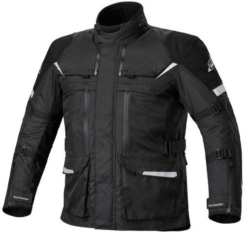 Abrasion-resistant 450D Cordura waterproof laminate nylon shell Electronically seam-sealed construction DWR coating sheds water Removable zip-out full-sleeve thermal liner Get Block 100% waterproof zippers at chest pockets for a smooth and innovative look Reinforced 1680D poly dobby in critical elbow and lower arm areas for enhanced abrasion resistance Strategically placed stretch panels for comfort and flexibility Oversized chest and back ventilation Front and rear cargo pockets, hand pockets, and internal media pockets Safe-Tech CE level-2 shoulder and elbow armor Removable EVA foam back pad (fits Safe-Tech size L back pad) High-intensity reflective accents for rider visibility Sliding arm take-up straps for infinite adjustability Waist belt with hidden stretch panel for a customized fit 8" jacket-to-pant attachment zipper with the pant side included