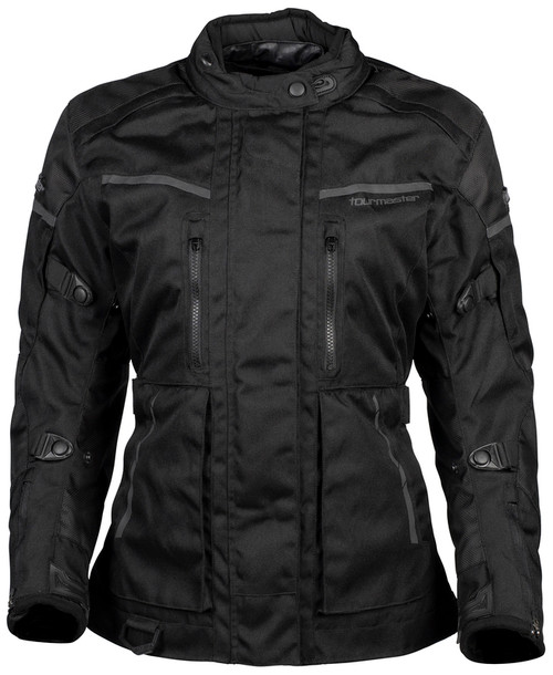 Shell constructed using highly abrasion-resistant 600 denier Carbolex polyester fabric, 1680 denier ballistic polyester in the elbows Pipeline venting with pinch vents A total of 11 intake and exhaust vents for maximum air circulation Aqua-Barrier Under-The-Helmet hood to help eliminate seepage while riding Accordion stretch panels in the back and elbows Phoslite reflective protection Microfiber-lined collar and cuffs Adjustable sleeve take-up straps at forearm and bicep Newly designed CE-approved Armadillo armor in the elbow and shoulder, with revised articulated triple-density back protector Waterproof, breathable Rainguard barrier Removable thermal liner Zippered chest map pocket, fleece-lined hand warmer pockets, internal pouch, mobile media pocket, and dual zippered fanny pack Adjustable waist belts with TPR pulls