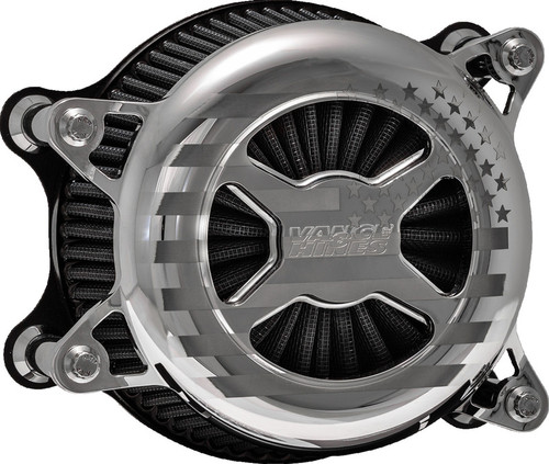 Lets the freedom flow through your American v-twin thanks to our high flow air filter and new 'patent pending' Force velocity stack This special edition VO2 Air Intake is crowned with the Stars & Stripes and bolted down with ARP hardware Extract maximum performance and show off your pride with the VO2 America from Vance & Hines Made in the U.S.A.